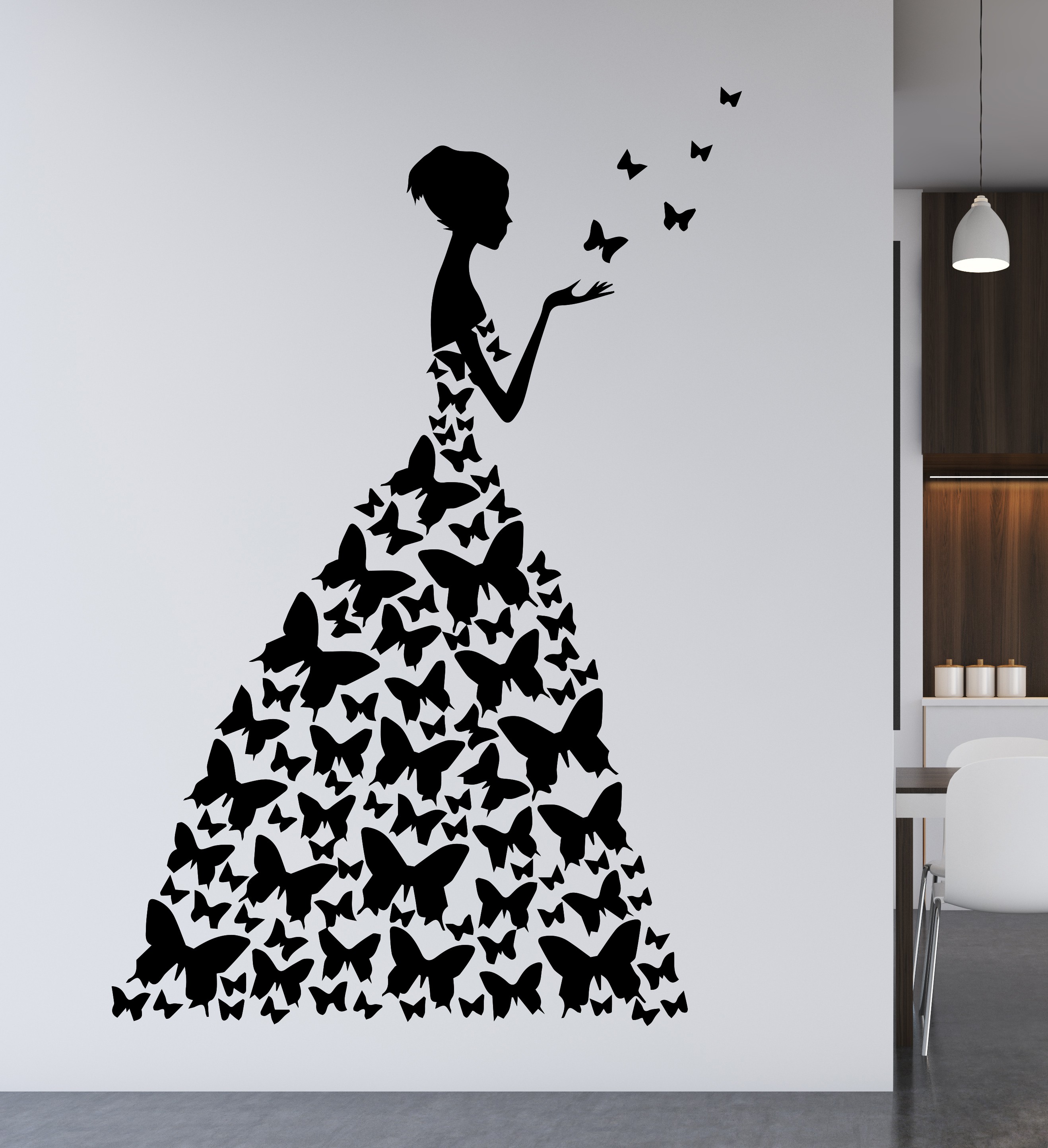• The image of the wall sticker in the room shown is symbolic.