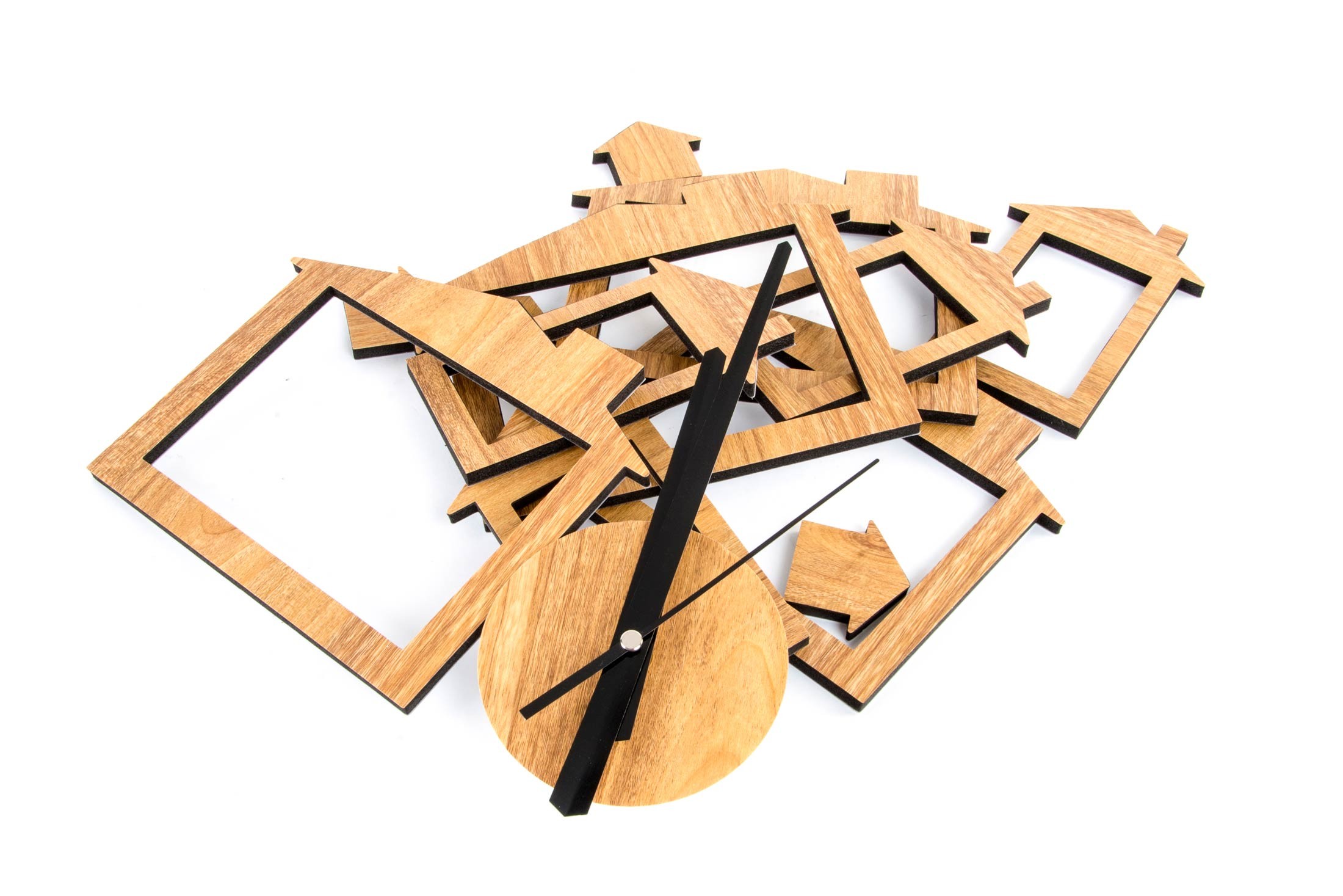 Wall clock with eight picture frames, sticker. Clock mechanism included.