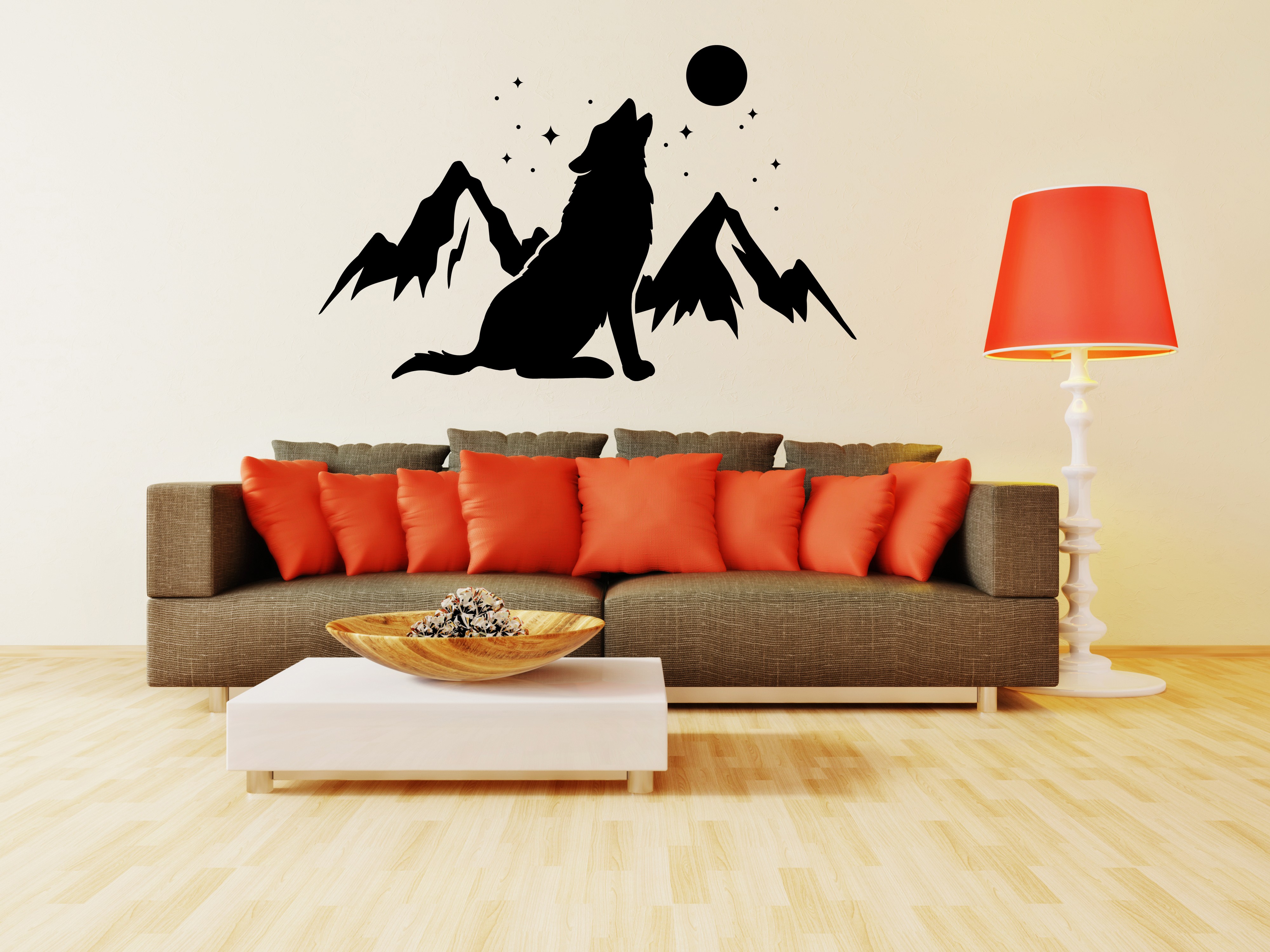 • The image of the wall sticker in the room shown is symbolic.